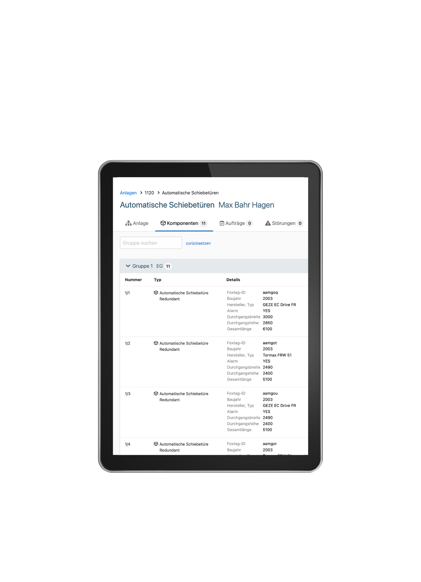 Objekte, Etagen und Türanlagen einsehen können. Dort sehen Sie zu