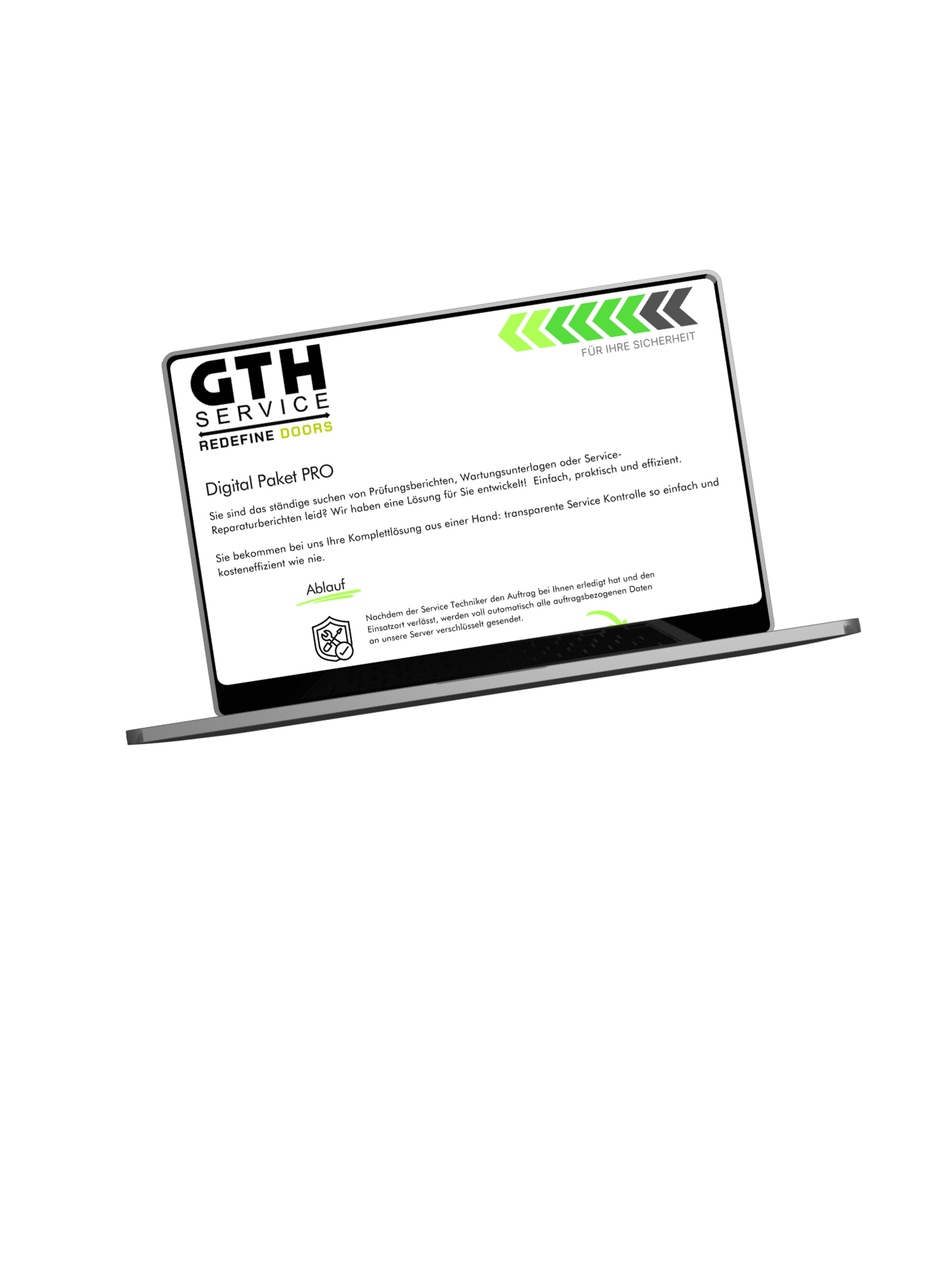 Nachdem der Service Techniker den Auftrag bei Ihnen erledigt hat und den Einsatzort verlässt, werden voll automatisch alle auftragsbezogenen Daten an unsere Server verschlüsselt gesendet.